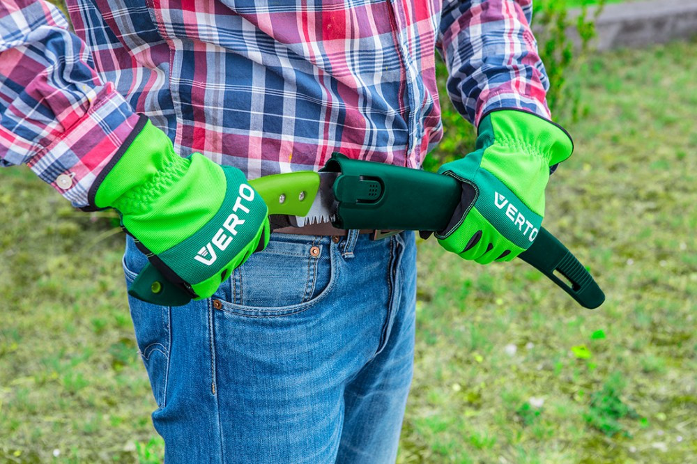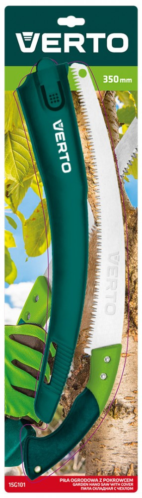 VERTO Hajlított kerti fűrész a penge hossza 350 mm. Rendkívül hasznos szerszám a kerti munkákhoz. Nagyon hatékony fogazat, az egy colra eső 7 fog könnyíti a munkát. A műanyagból készült ergonomikus markolat csúszásgátlóval van ellátva, ami biztosítja a munkavégzés biztonságát és komfortját. A fűrészhez mellékelt strapabíró műanyag tok megkönnyíti a szerszám tárolását és szállítását.