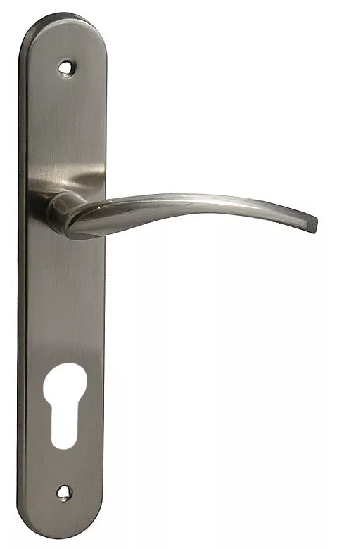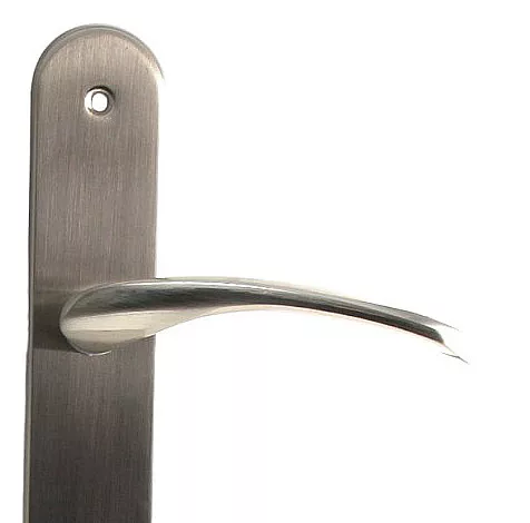 Nagyon impozáns megjelenésű szépen ívelt kilincs. Szálra csiszolt matt króm felülettel. Rugós működtetésű termék. Szállítás: 2 munkanap Ajtócímke méret: 243 mm x 42 mm Kilincsméret: 120 mm