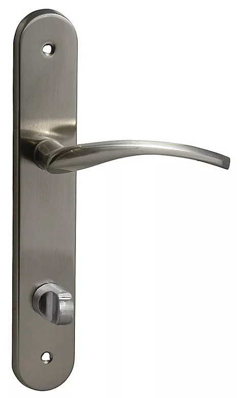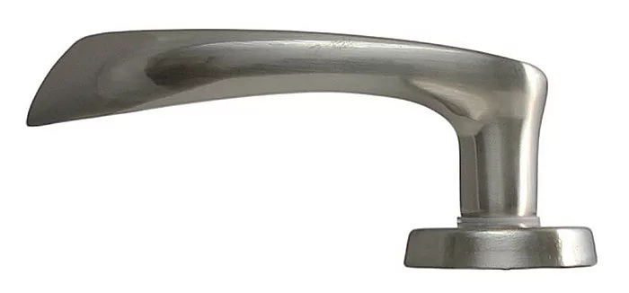 Nagyon impozáns megjelenésű szépen ívelt kilincs. Szálra csiszolt matt króm felülettel. Rugós működtetésű termék. Szállítás: 2 munkanap Ajtócímke méret: 243 mm x 42 mm Kilincsméret: 120 mm