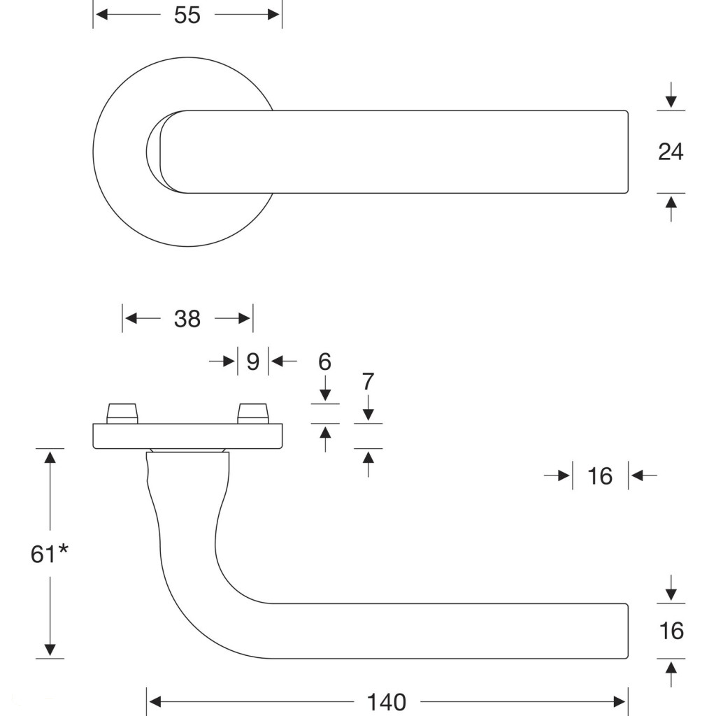 Kivitel: Kilincs és rozetta külön, FSB ASL® adaptertechnológia, mindkét oldalon semleges irányú fenntartó rugóval, A típusú fenntartó mechanizmus, rugós alátámasztás, 45°-os működtetési szög