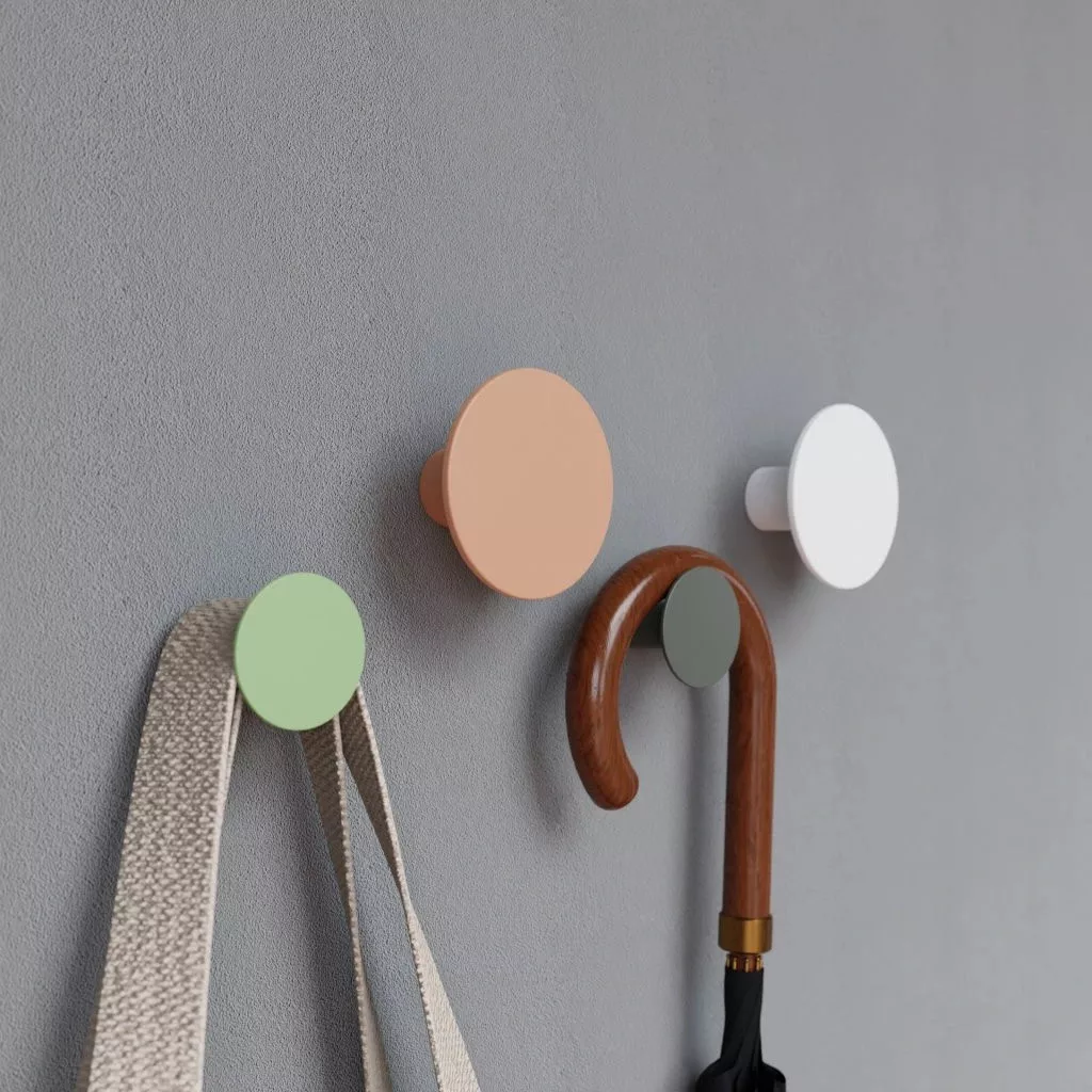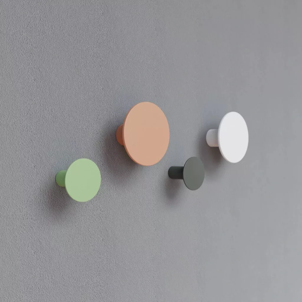 Egy stílusos, színes vállfákból álló szett feldobja a teret. Minden vállfa magassága azonos, 48 ​​mm, de átmérőjükben különböznek: a fehér és narancssárga 84 mm, a szürke és zöld 49 mm átmérőjű.