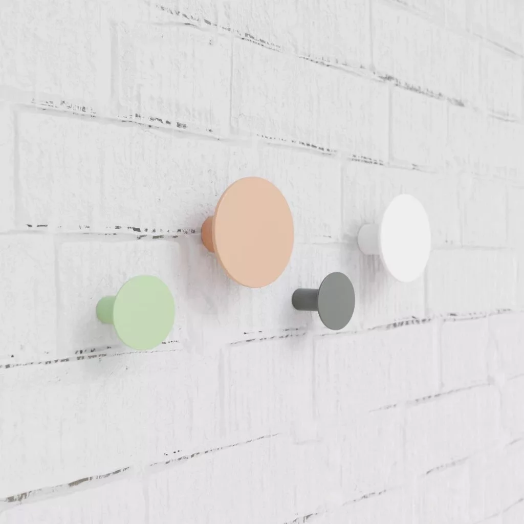 A(z) Fali akasztók szett kerek vegyes színek gyanta 4 db. praktikus szerelési kiegészítő különféle barkács és műszaki feladatokhoz. Egy stílusos, színes vállfákból álló szett feldobja a teret. Minden vállfa magassága azonos, 48 ​​mm, de átmérőjükben különböznek: a fehér és narancssárga 84 mm, a szürke és zöld 49 mm átmérőjű.