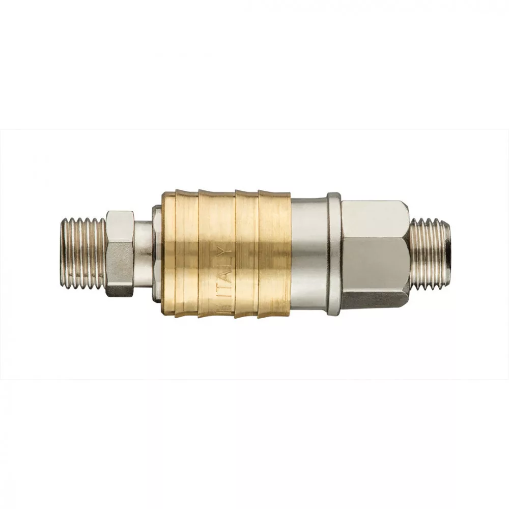 Gyorscsatlakozó légkompresszorhoz tömlőcsatlakozóval, külső menetes, rozsdamentes acél, sárgaréz