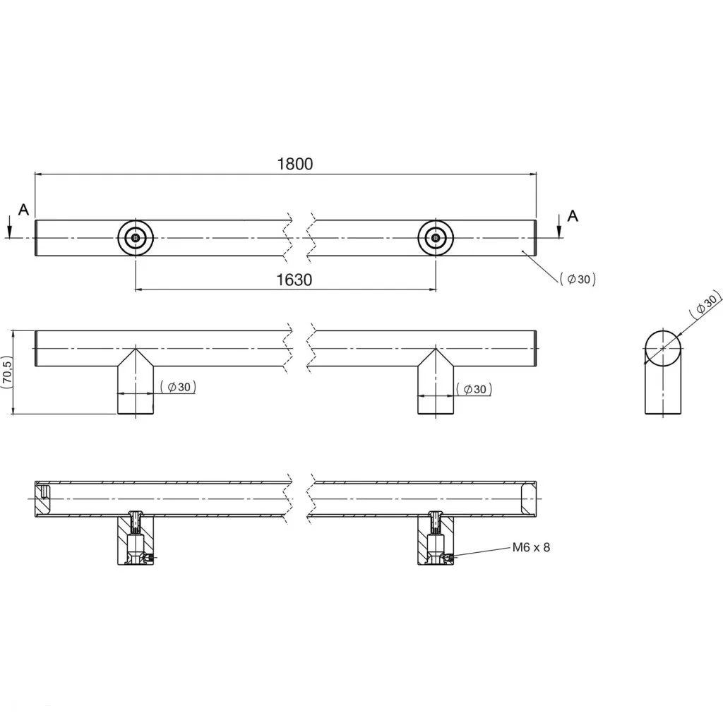 HALCÖ tolófogantyú ? 30 mm hossz 1800mm acél horganyzott passzívált