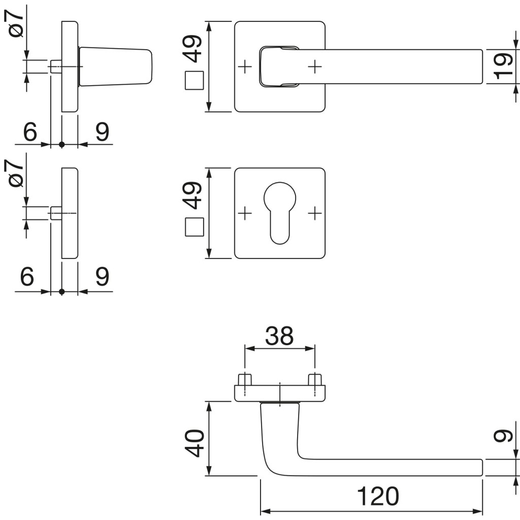 HOPPE DUBLIN rozettás kilincsgarnitúra szögletes matt króm PZ