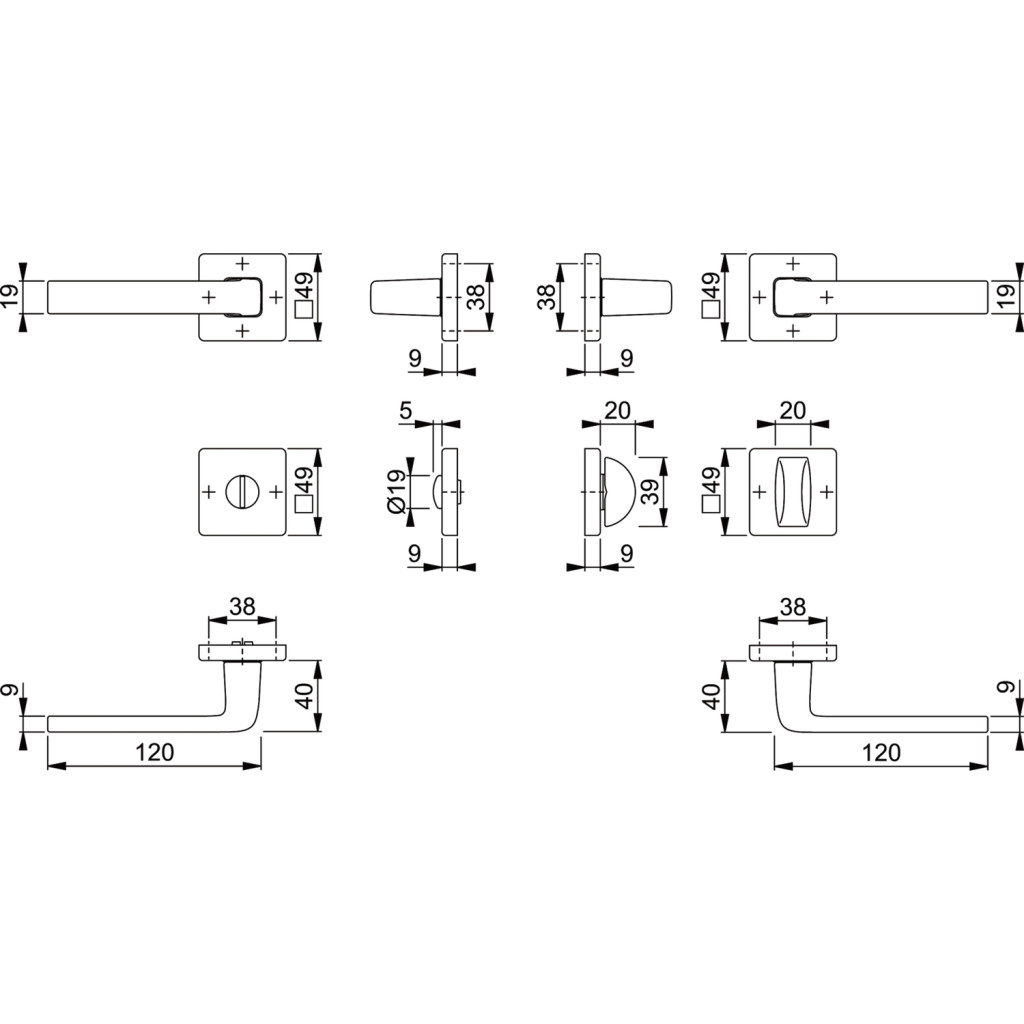 HOPPE DUBLIN rozettás kilincsgarnitúra szögletes matt króm WC