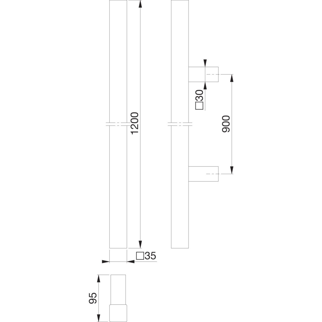 HOPPE ajtófogantyú E5766, egyenes,1200/900 mm rozsdm.