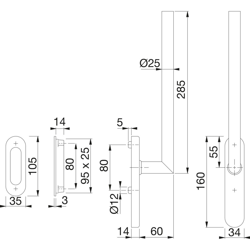 HOPPE AMSTERDAM emelő-toló garnitúra kagylófogantyúval lyuk.nélkül 285 mm rozsdamentes matt