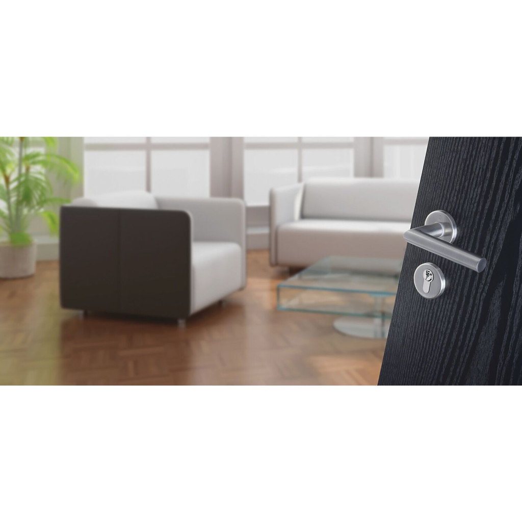 A rozettás kialakítás letisztult és elegáns megjelenést biztosít, miközben a könnyű és gyors felszerelés jelentősen megkönnyíti a beépítést új ajtók esetén és felújításkor egyaránt. Az ergonomikus forma kényelmes fogást és megbízható működést nyújt a mindennapi használat során.