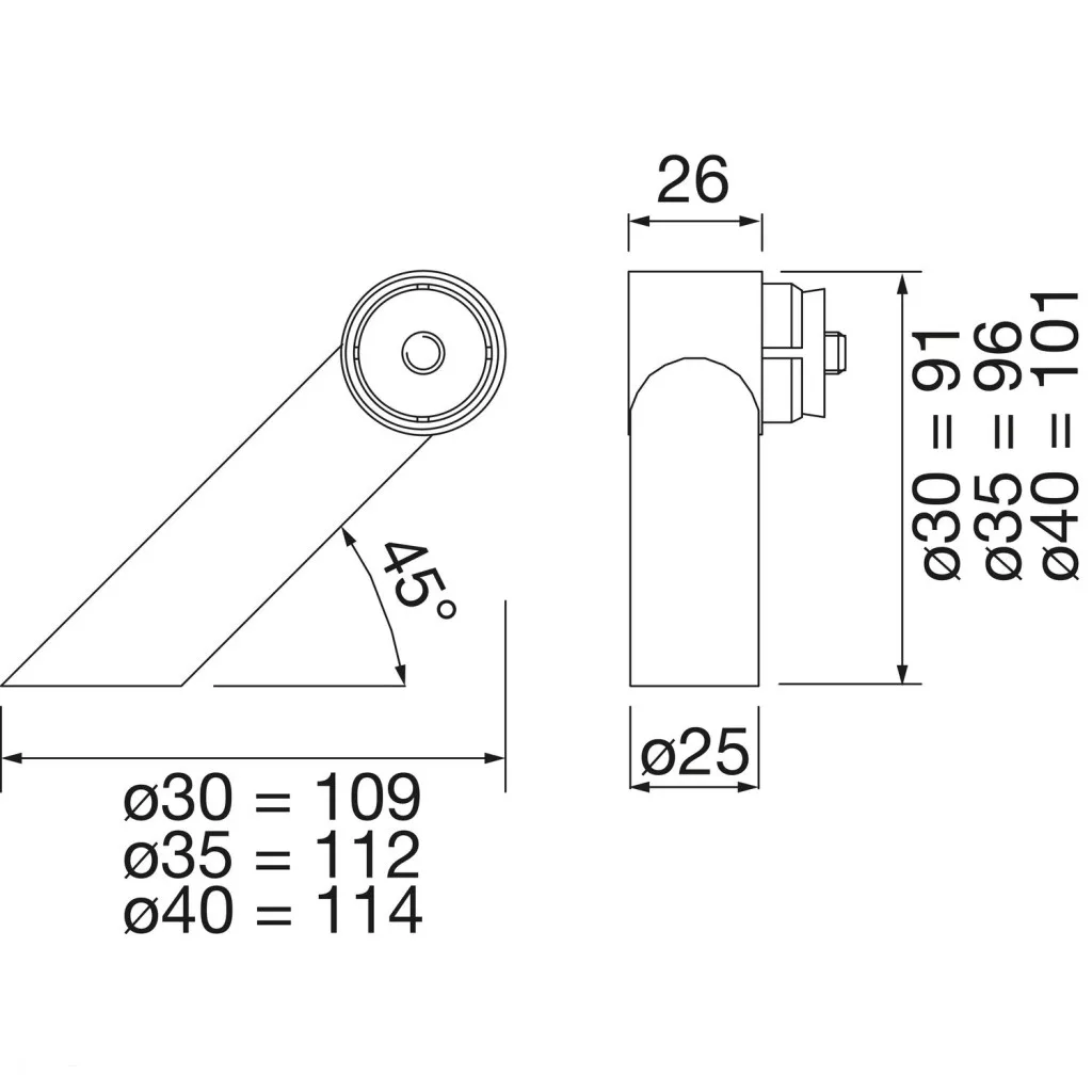 KWS végtámasz RS - ferde 45° kerek cső jobbos 30mm nemesacél