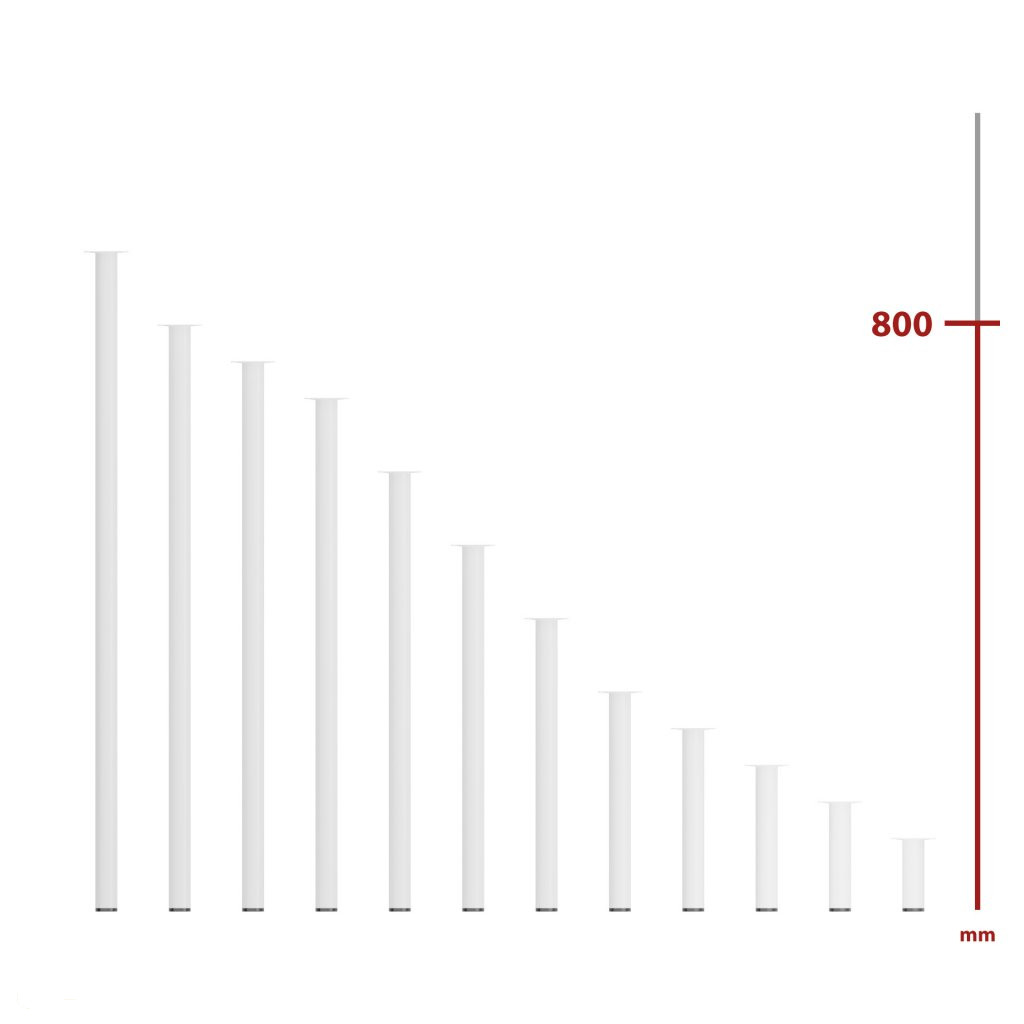 A 800 mm magas, fehér színű, kerek bútorláb stílusos dizájnelemmé varázsolja bútorát. Méret: 60x60 mm.