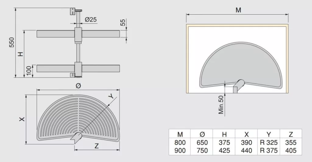 Konyhai 1/2 kör forgókosár szett EMUCA fehér 750mm