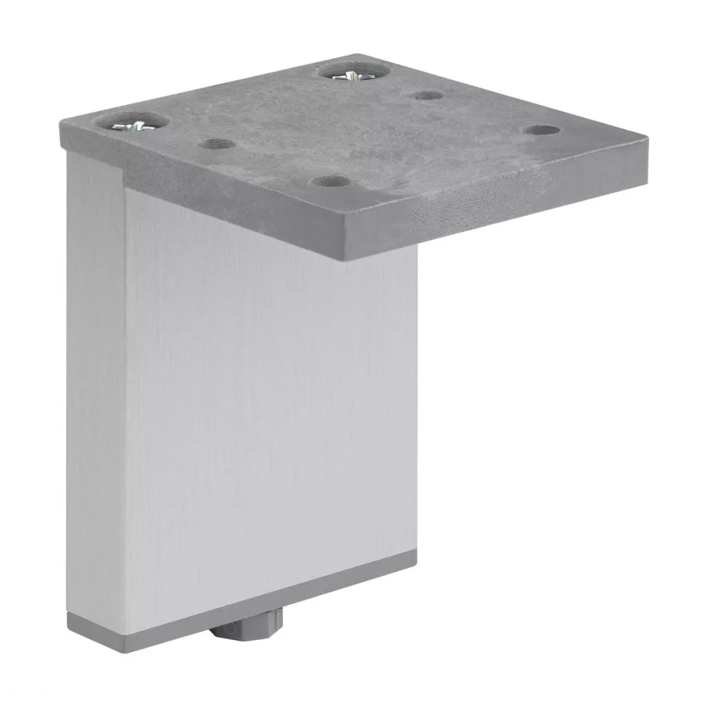 Minimalista bútorláb eloxált alumíniumból, 10/45 mm szélességgel, 60 mm magassággal és 41 mm mélységgel, műanyag csúszkával. A 45 x 41 mm méretű talp biztosítja a bútor szilárd rögzítését.