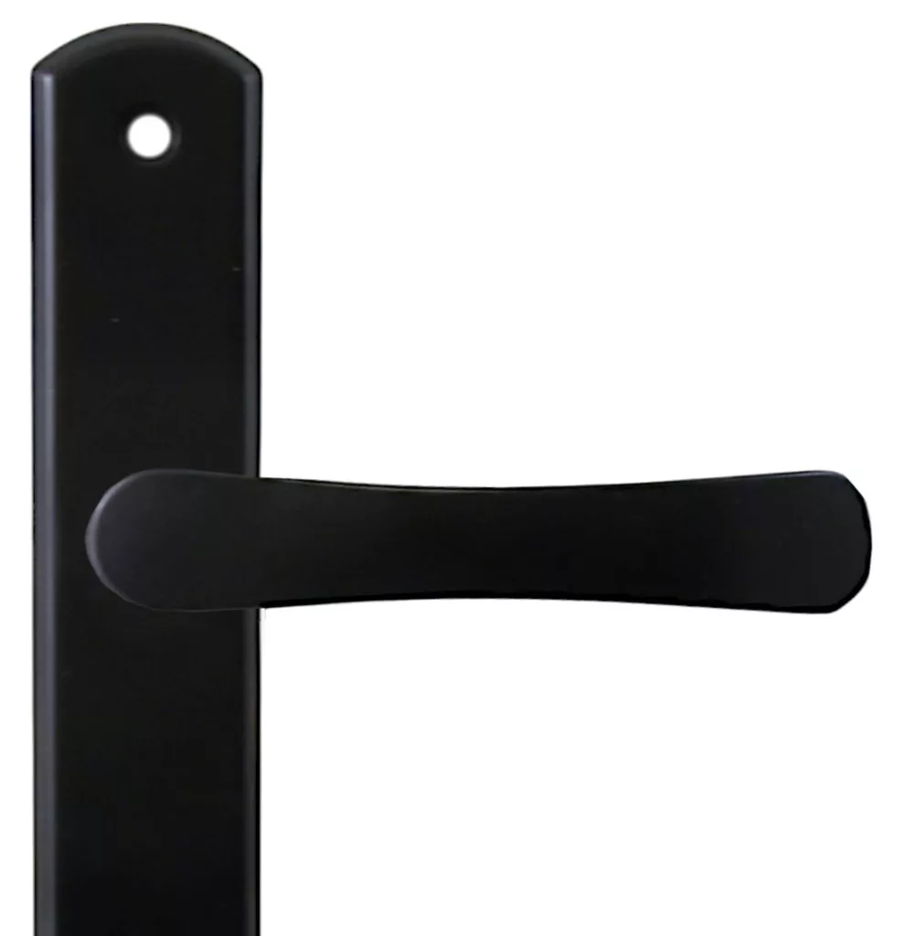 Larina egyszerű, letisztult vonalvezetésű népszerű fekete ajtókilincsünk keskeny pajzsú kivitelben.