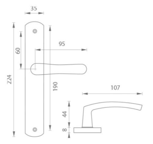 A kilincs alumíniumból ötvözetből, a pajzs sajtolt acéllemezből készül. Strapabíró, porszórt felületkezeléssel nyeri el végső felületi színét.