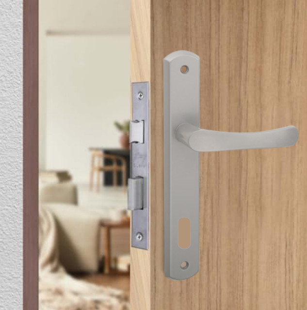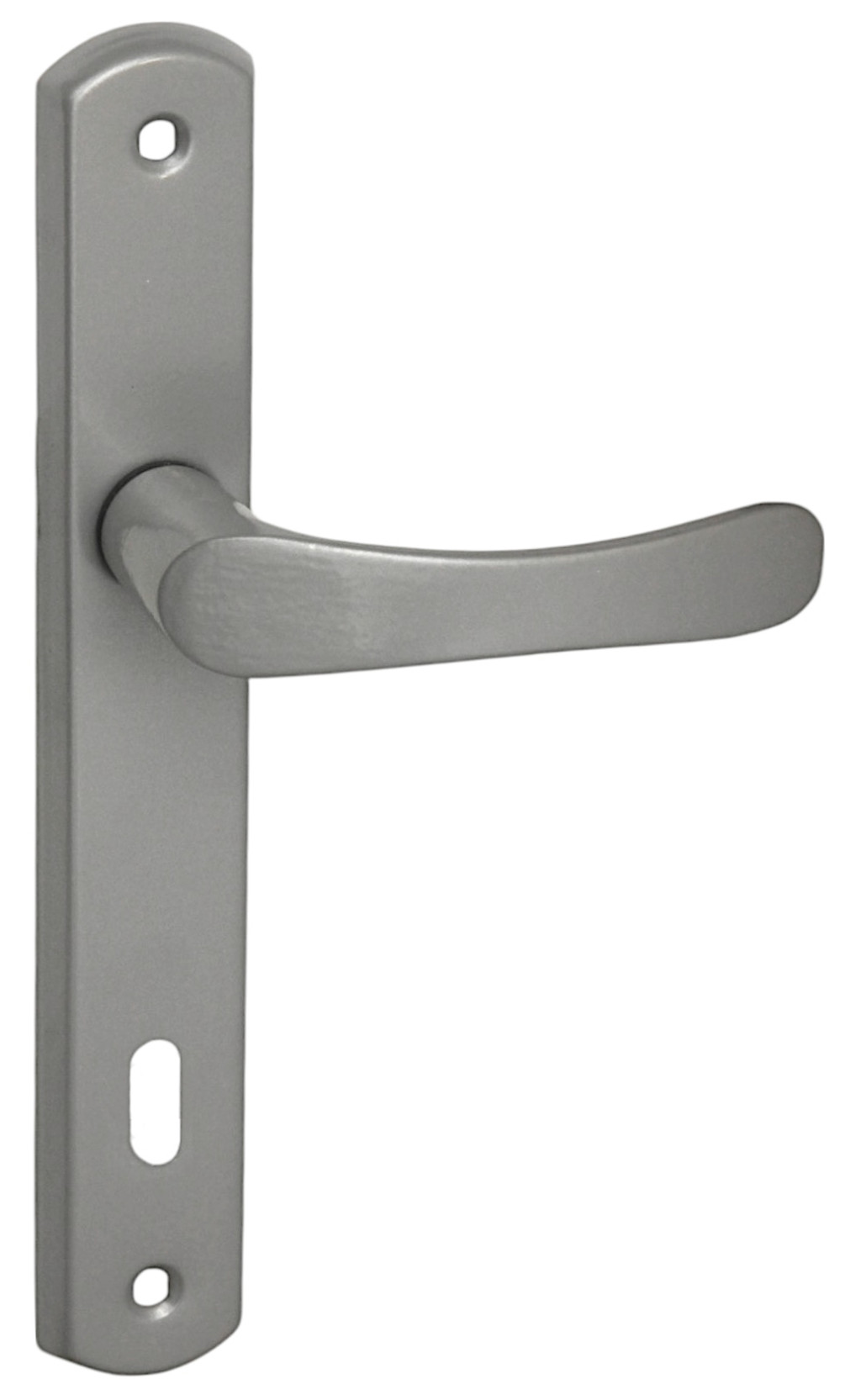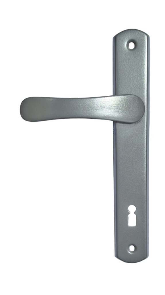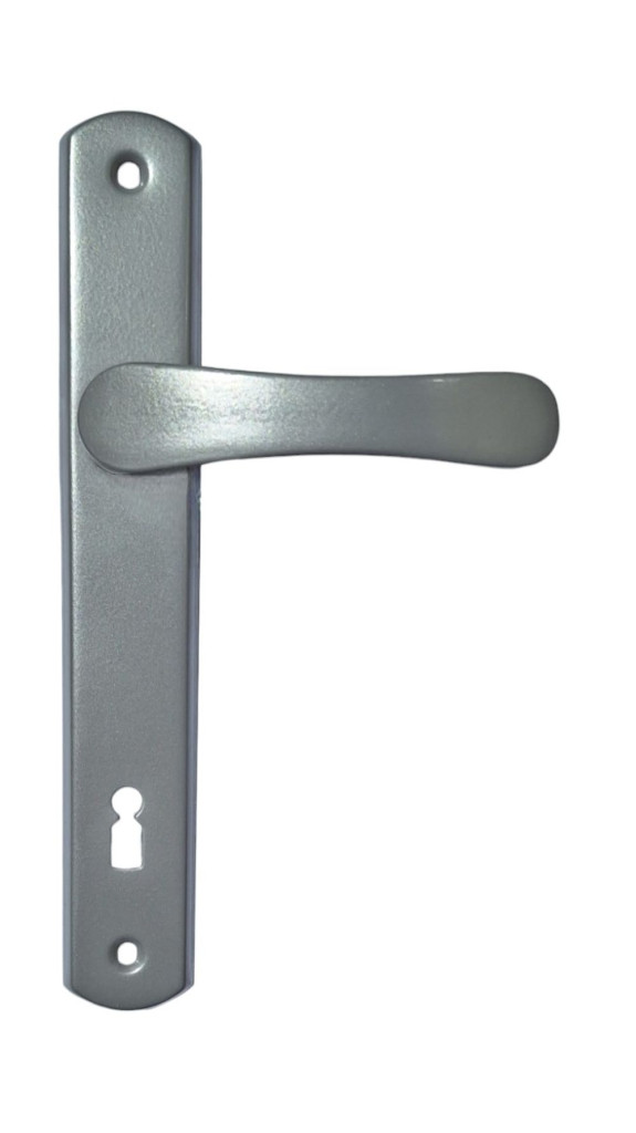 Larina egyszerű, letisztult vonalvezetésű népszerű szürke ajtókilincsünk keskeny pajzsú kivitelben.