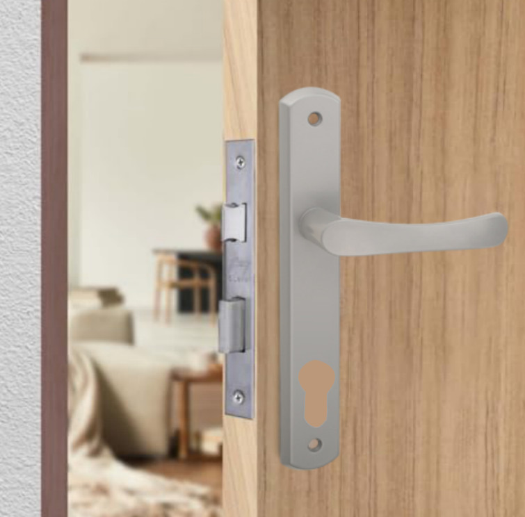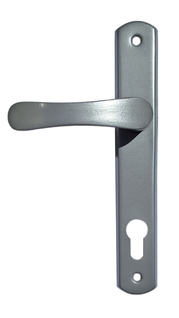 Larina egyszerű, letisztult vonalvezetésű népszerű szürke ajtókilincsünk keskeny pajzsú kivitelben.