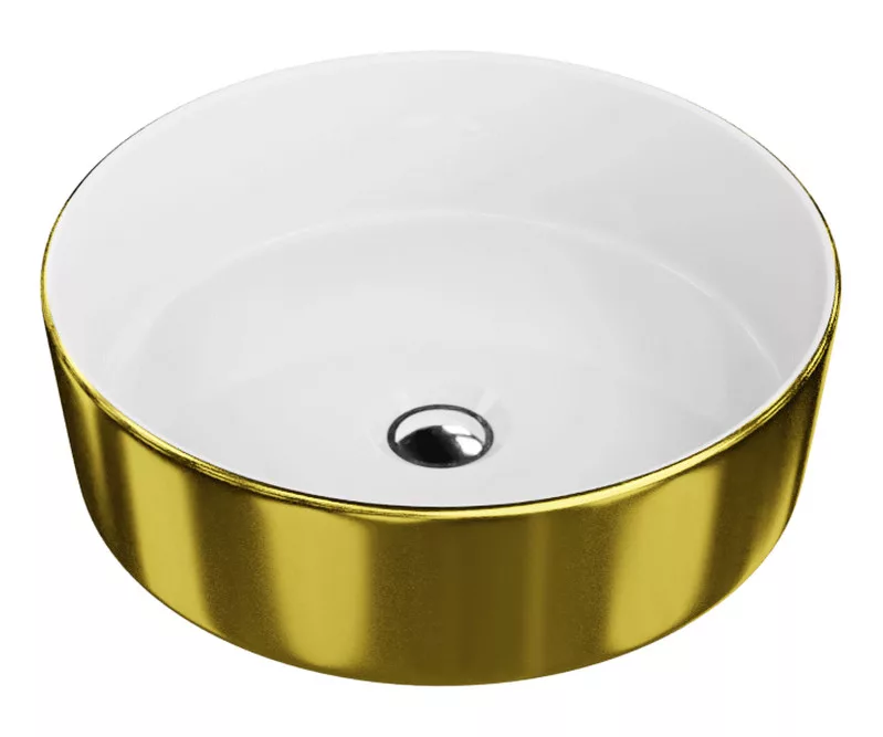 Tegye felejthetetlenné fürdőszobája hangulatát ezzel a modern, kerek arany mosdókagylóval, amely a luxus és a funkcionalitás tökéletes ötvözete. A csillogó arany felület különleges eleganciát sugároz, miközben a kerek forma lágy, harmonikus megjelenést biztosít.