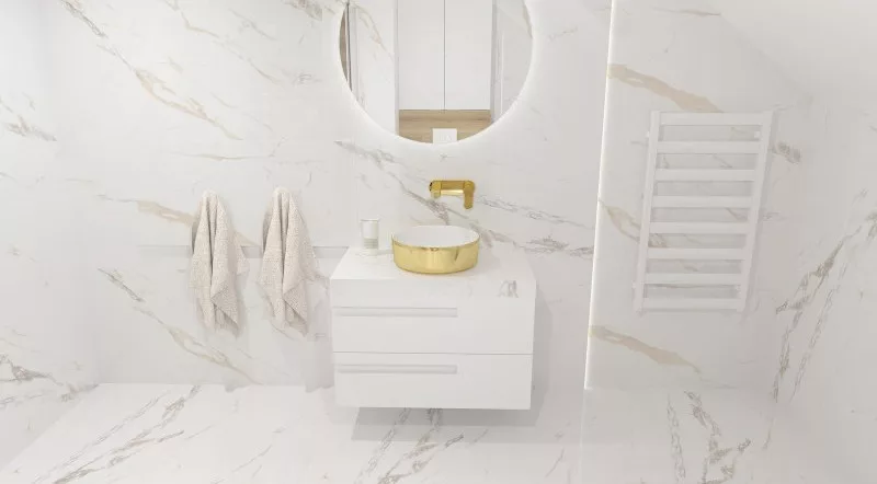 Lavita MERIDA GOLD/WHITE Mosdókagyló, fehér/arany – Lenyűgöző, kerek forma és luxus megjelenés. Egyedi stílusú fürdőszobák tökéletes kiegészítője.