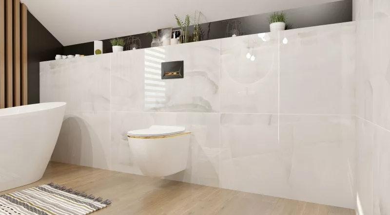 A WC-csésze ergonomikus kialakítású, tartós és könnyen tisztán tartható, így nemcsak esztétikus, de praktikus is. Arany vagy fekete színű kiegészítőkkel kombinálva igazán harmonikus összhatást érhet el.