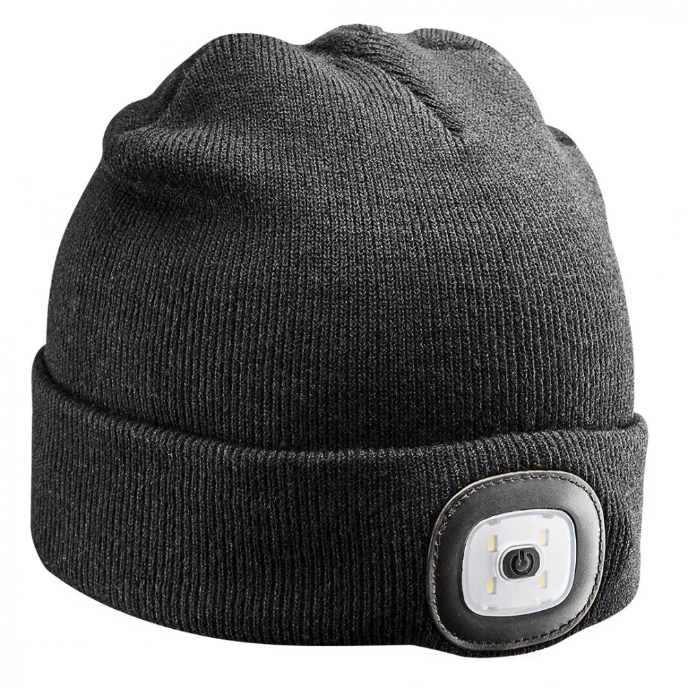 Sapka beépített lámpával, vízálló lámpa (IP43 - fröccsenő víz ellen védett minden irányból. bármilyen szögben a függőlegestől mért 60°-ig), USB aljzaton keresztül tölthető, 3 fényerő szint (100%, 75%, 50%)