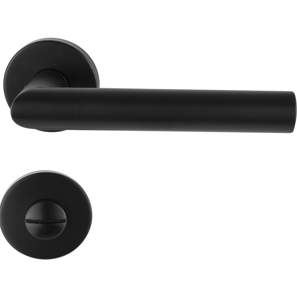 Marchesi rozettás kilincsgarnitúra GEHRUNG WC támasztóbütyökkel nemesacél matt fekete