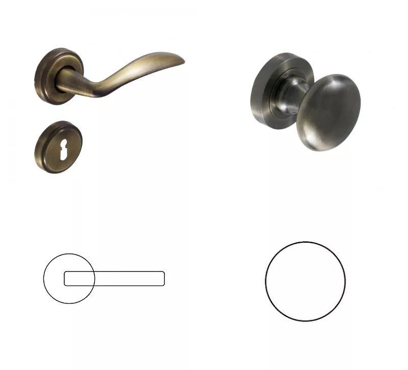 Az ajtókilincs Zamak alapanyagból felülete súrolt antik, szálra csiszolt felülettel készül. Szép vonalú, lágyan ívelt kilinccsel. Ajtókilincs antik réz hatású kivitelben, lakkal védett felülettel rugós működtetésű. .