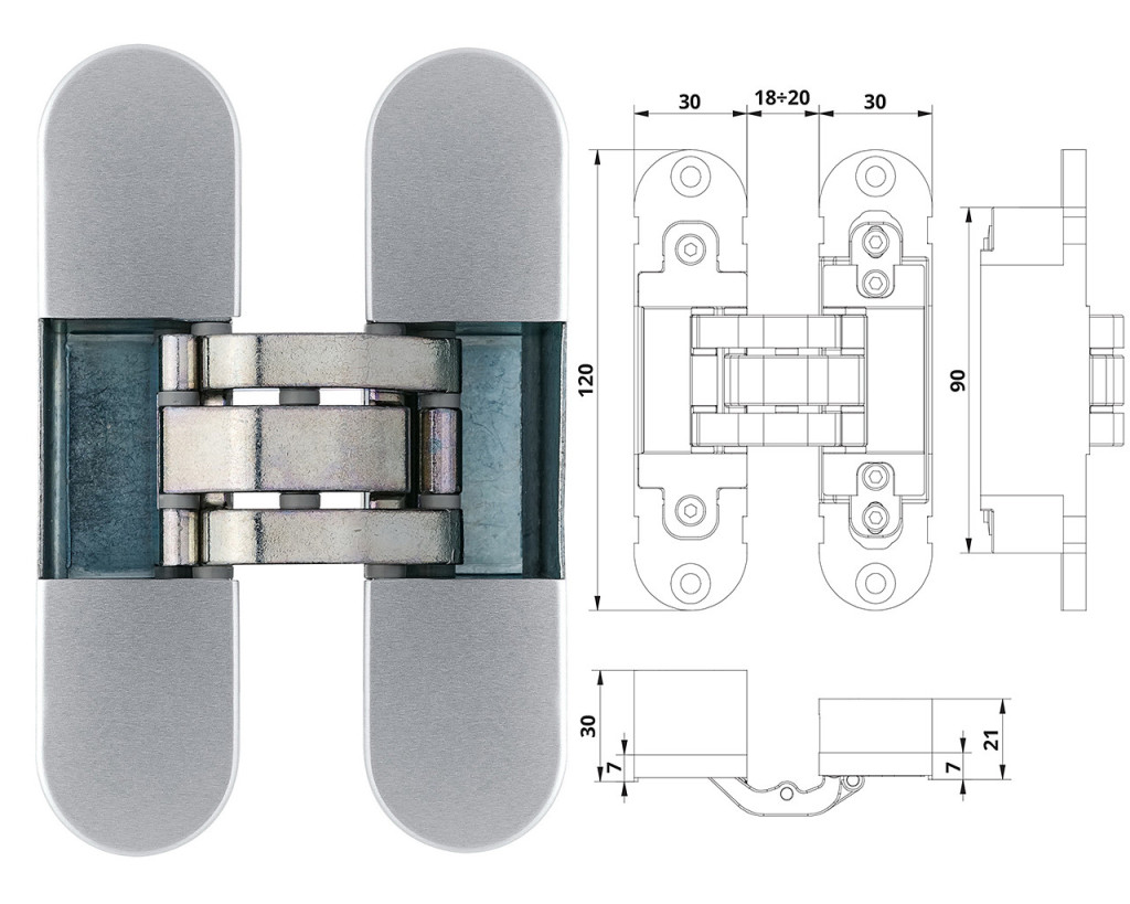 Otlav pánt rejtett IN300 3D 30x120mm horg.