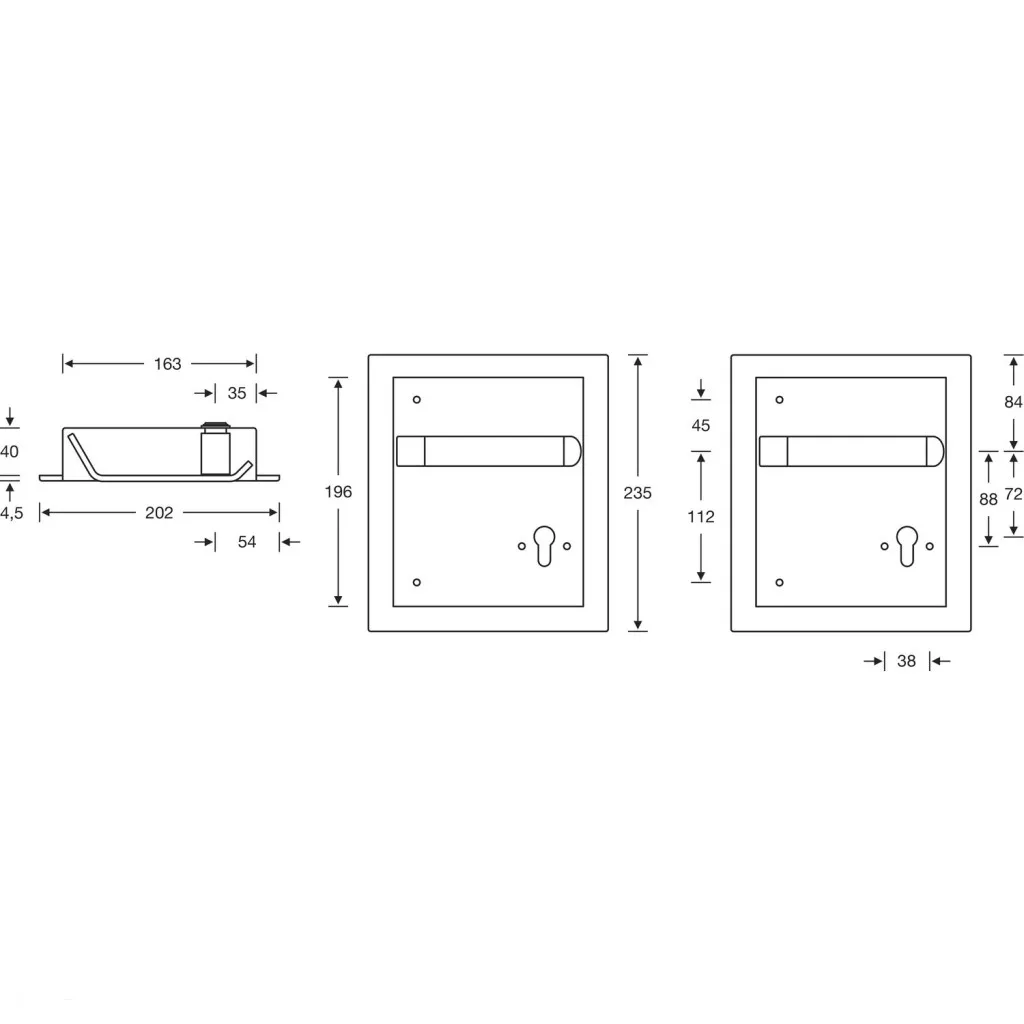 Tornaterem-vasalat tűzg. 77 7948 - 200 x 230 bal PZ 72 mm EN 179 nemesacél