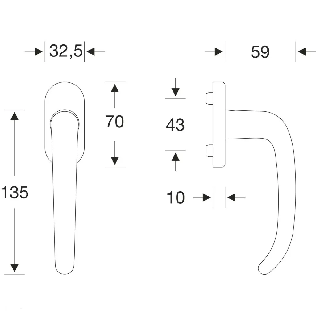 Rozetta (mm): 32,5 x 70 x 10