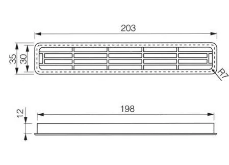 Szellőzőrács műanyag 35-ös fehér 203x35mm