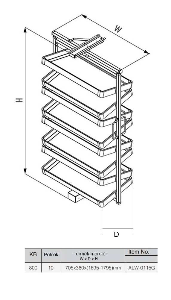 Cipőtartó kiforduló C antracit 1695-1795mm