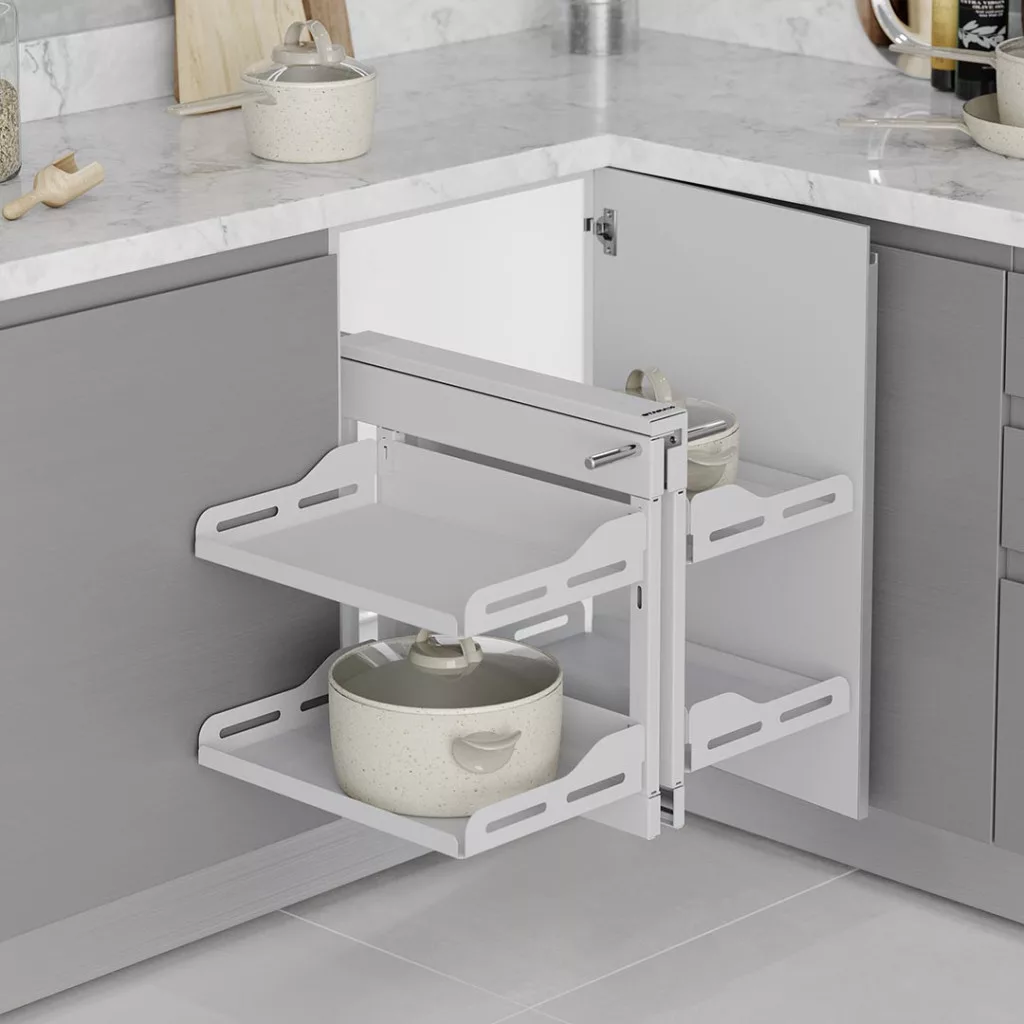 Konyhai sarokmechanizmus Unique "R" teljes kihúzású univerzális fehér 400mm