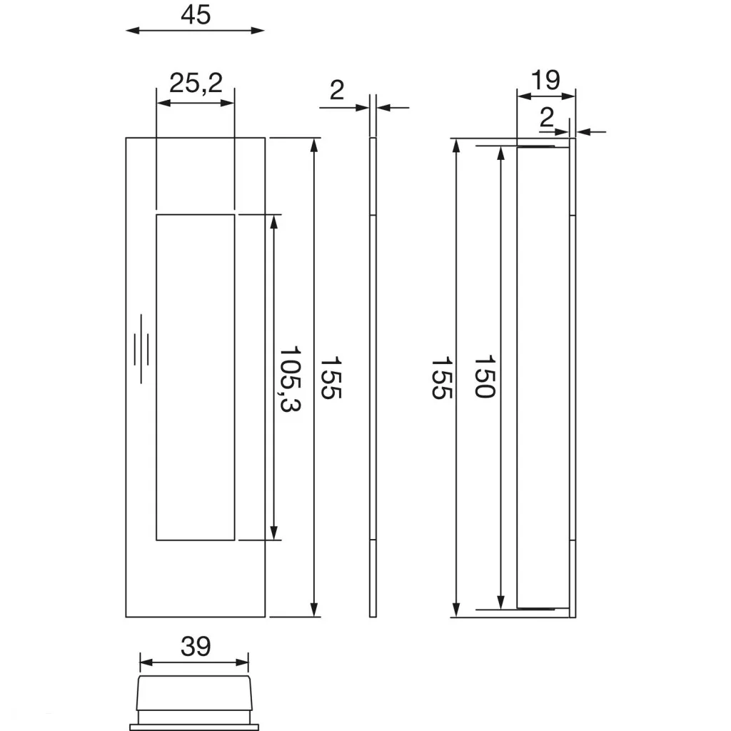 - külméret (mm) - 155 x 45 x 2