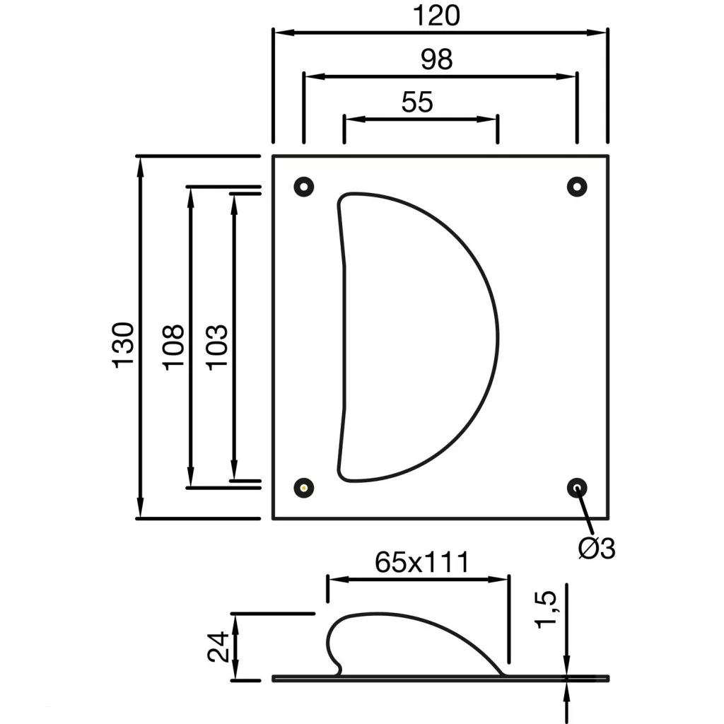 KWS tolóajtó kagylófogantyú 5205 szögletes 120 x 130 mm nemesacél fényes