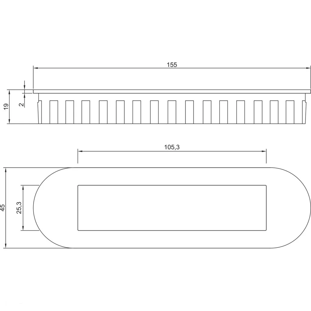 - külméret (mm) - 155 x 45 x 2