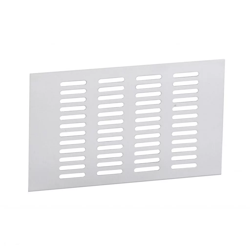 120 mm széles, 200 mm hosszú és 18 mm magas alumínium szellőzőrács. Szerelése egy előre elkészített 110x180 mm-es nyílásba helyezve történik.