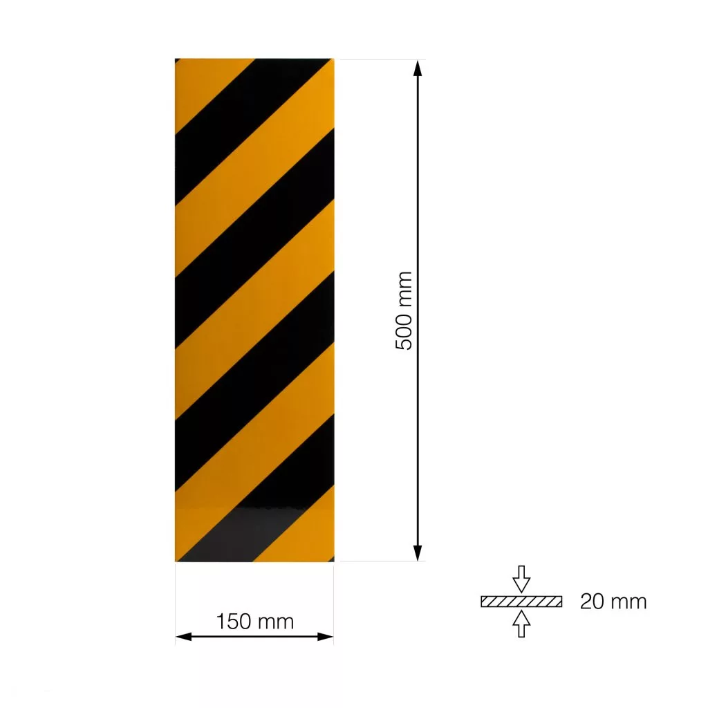 Védő habcsík, fekete-narancssárga, fényvisszaverő, 150 mm széles és 500 mm magas. A csomag 1 db-ot tartalmaz.
