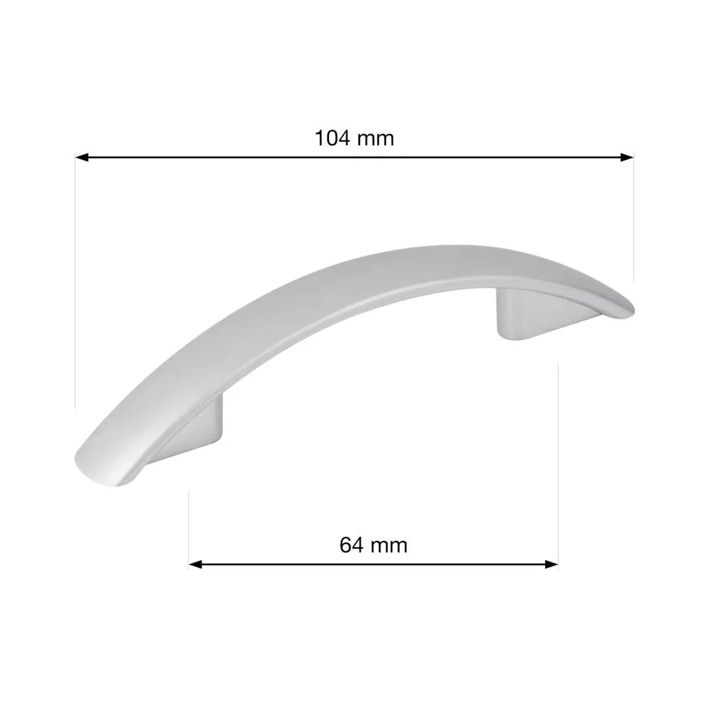 Klasszikus dizájnú Claudia bútorfogantyú 64 mm-es tengelytávolsággal és matt króm felülettel. A fogantyú hossza 104 mm, szélessége 14 mm és magassága 21 mm. Rögzítőcsavarokkal együtt.
