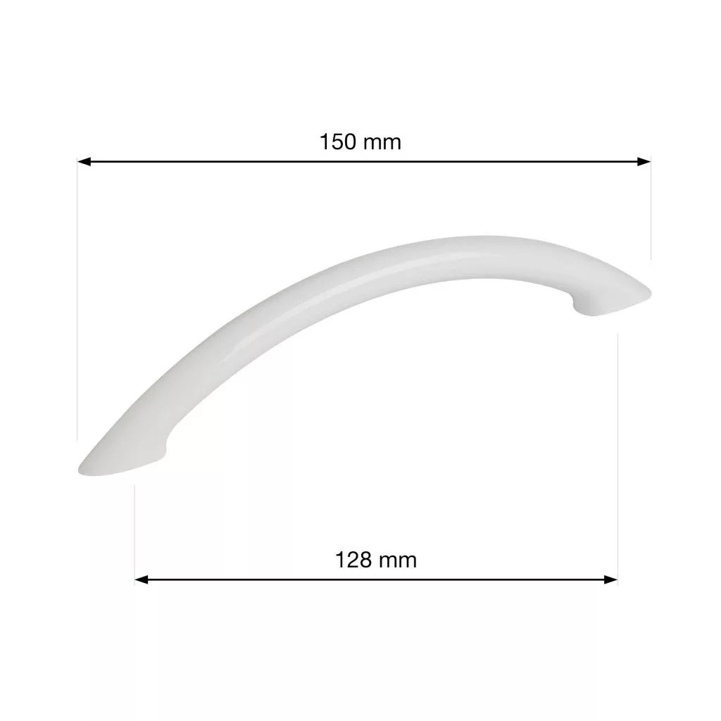 Klasszikus dizájnú, műanyag Béta bútorfogantyú, 128 mm-es rasztermérettel, fehér színben. A fogantyú hossza 150 mm, szélessége 10 mm, magassága 30 mm. Rögzítőcsavarokkal együtt.
