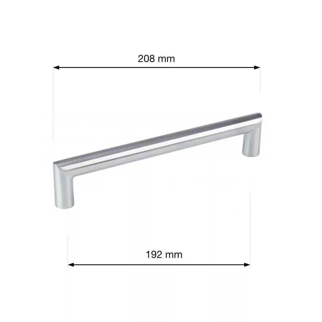 Modern rozsdamentes acél Vazia fogantyú 192 mm-es tengelytávolsággal. A fogantyú hossza 208 mm, szélessége 16 mm és magassága 40 mm. Rögzítőcsavarok mellékelve.