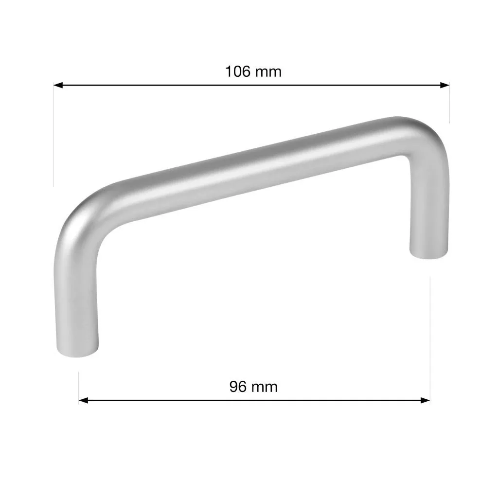 Modern Gissi bútorfogantyú 96 mm-es tengelytávolsággal és matt króm felülettel. A fogantyú hossza 106 mm, szélessége 10 mm és magassága 32 mm. Rögzítőcsavarokkal együtt.