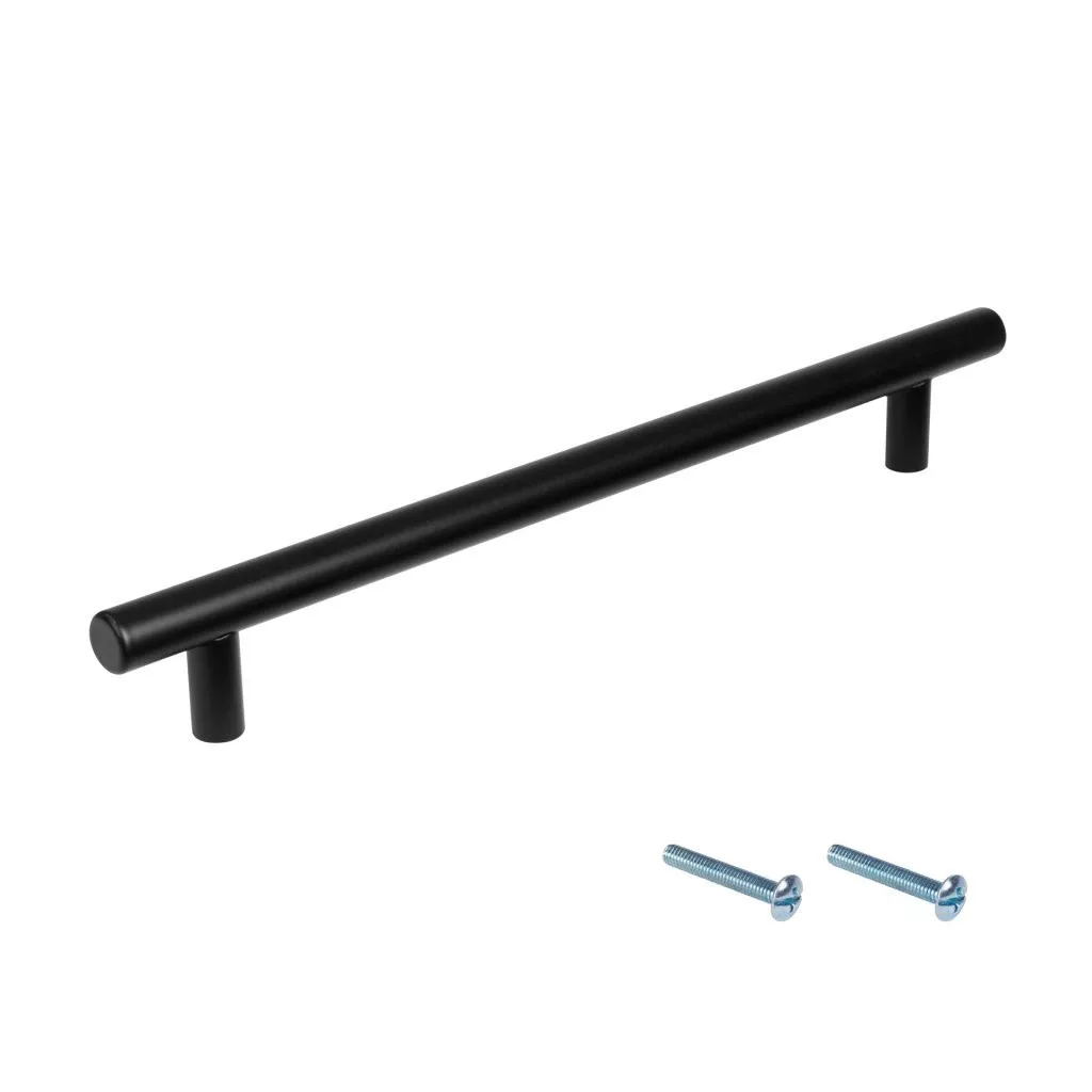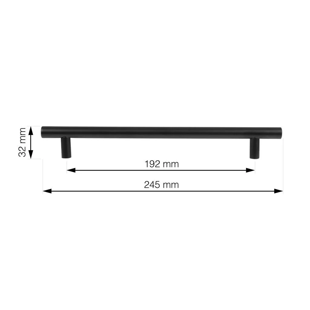 Modern Maxim bútorfogantyú 192 mm-es tengelytávolsággal és népszerű matt fekete felülettel. Fogantyúhossz 245 mm, szélesség 12 mm és magasság 32 mm. Rögzítőcsavarokkal együtt.