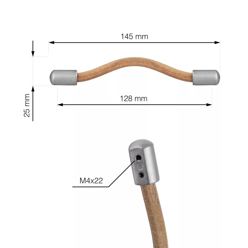 Modern Izola bútorfogantyú 128 mm-es tengelytávolsággal, bőr/matt króm felülettel. A fogantyú hossza 145 mm, magassága 25 mm. Rögzítőcsavarral együtt.