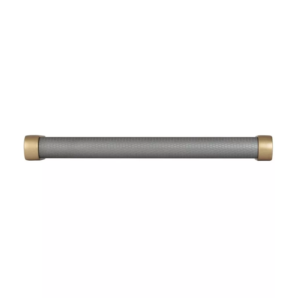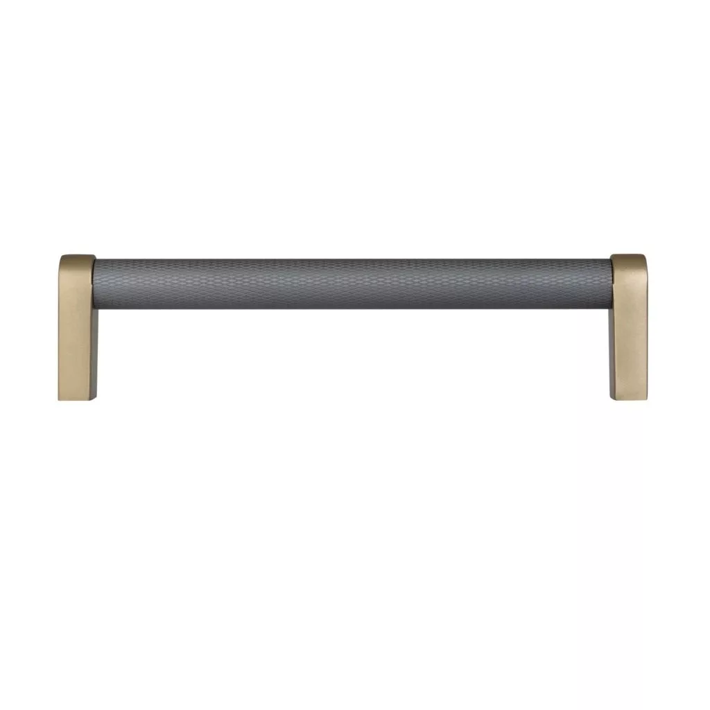 Bútor fogantyú Stirr tengelytávolság 128 mm alumínium szürke/szálcsiszolt sárgaréz