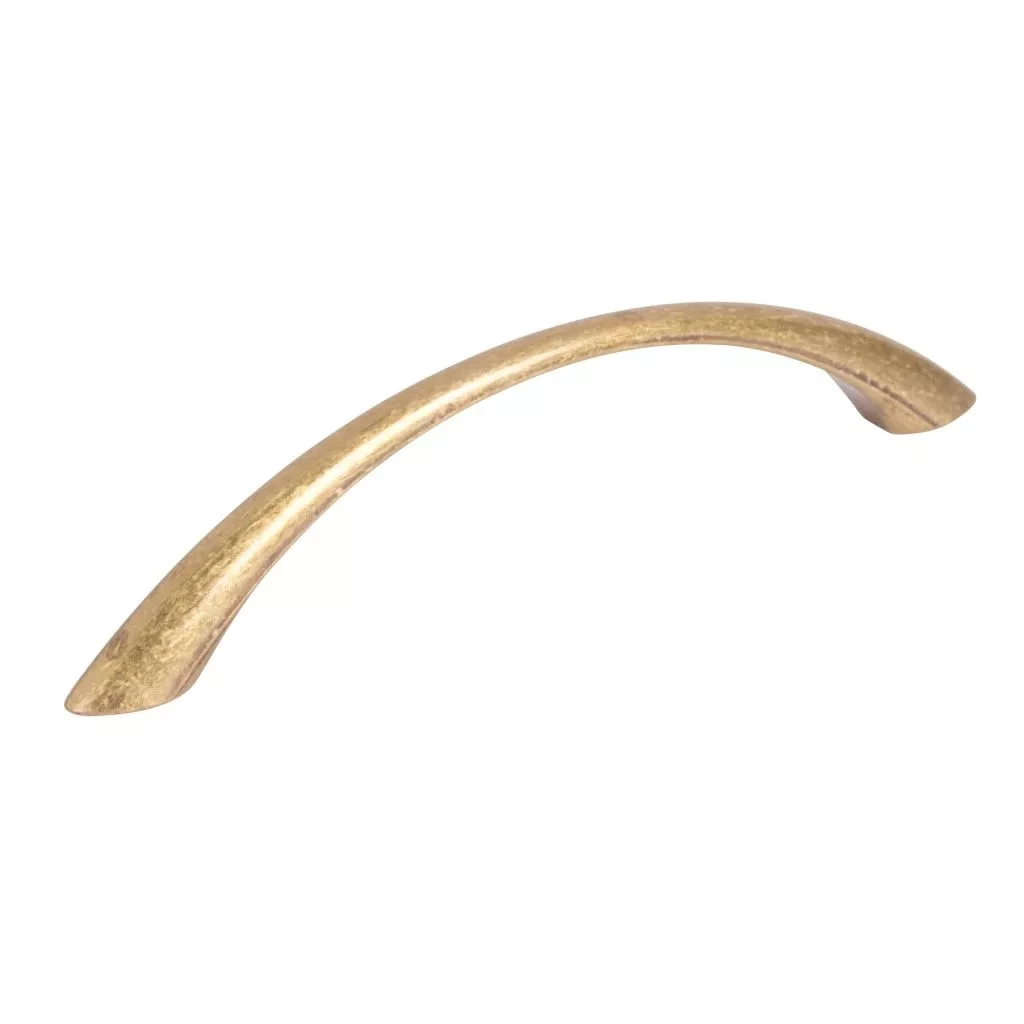 Gitka bútorfogantyú klasszikus dizájnnal, 96 mm-es tengelytávolsággal és sárgaréz patinás felülettel. A fogantyú hossza 113 mm, szélessége 8 mm és magassága 27 mm. Rögzítőcsavarok mellékelve.