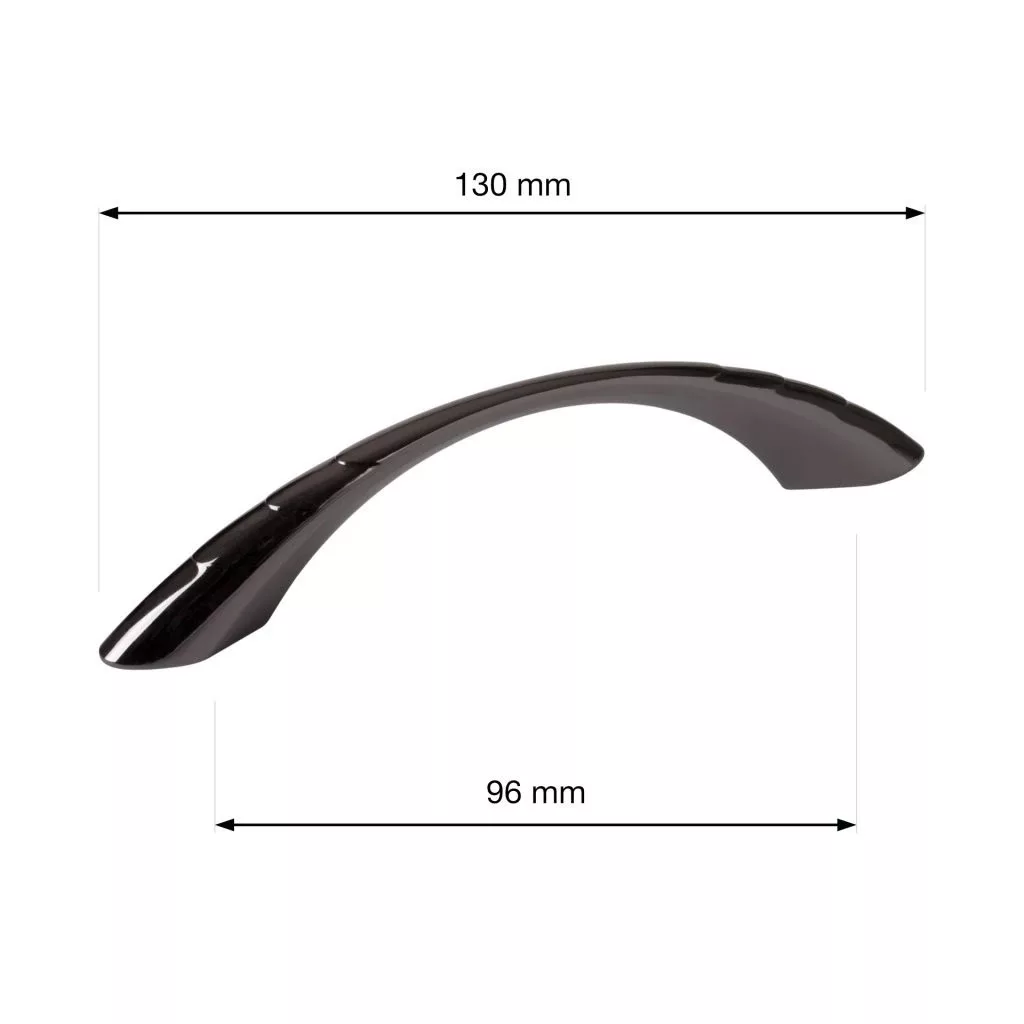 Linda bútorfogantyú klasszikus dizájnnal, 96 mm-es rasztermérettel és fekete nikkel bevonattal. A fogantyú hossza 130 mm, szélessége 12 mm és magassága 27 mm. Rögzítőcsavarokkal együtt.