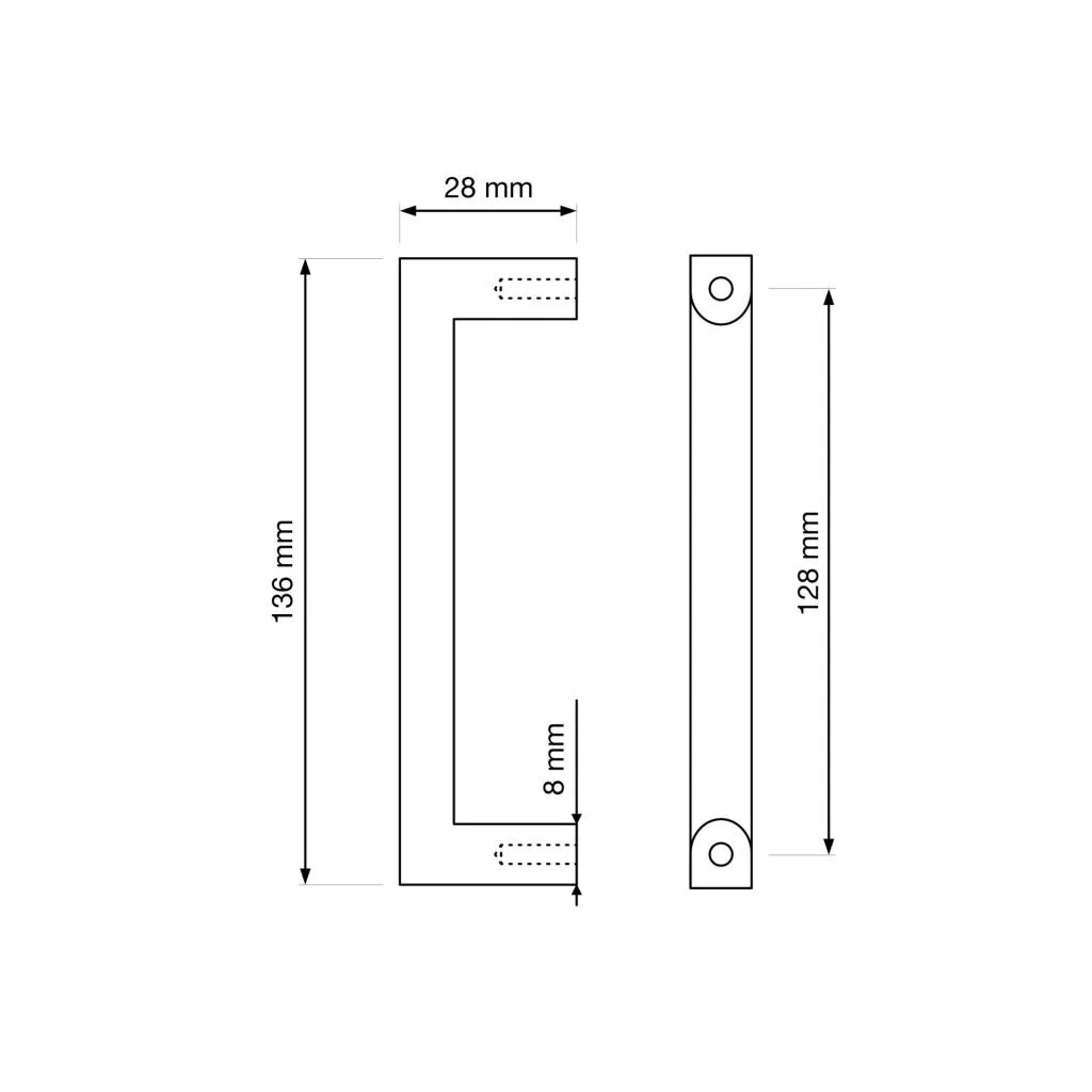 Modern Prisma bútorfogantyú 128 mm-es tengelytávolsággal és szálcsiszolt szatén nikkel felülettel. Fogantyúhossz 136 mm, szélesség 8 mm és magasság 28 mm. Rögzítőcsavarokkal együtt.