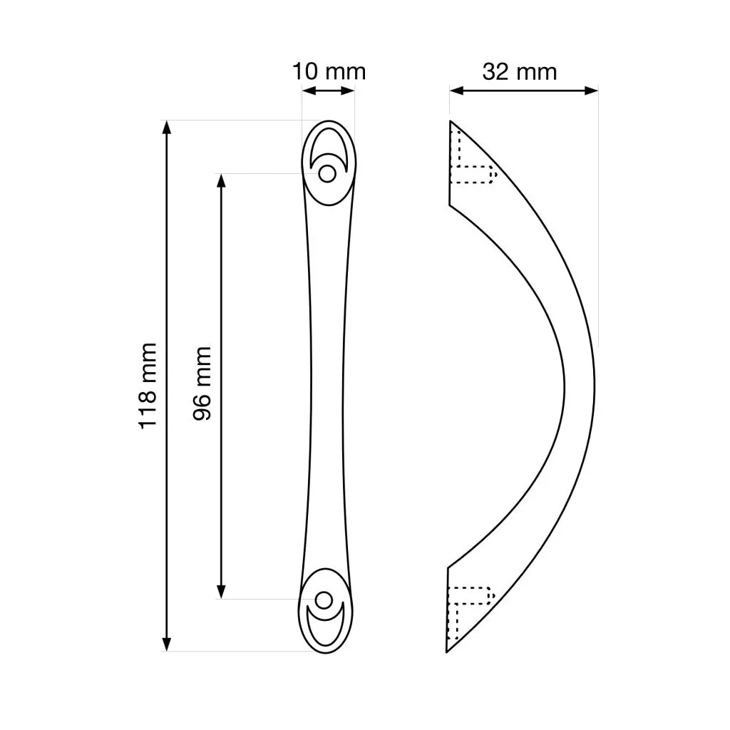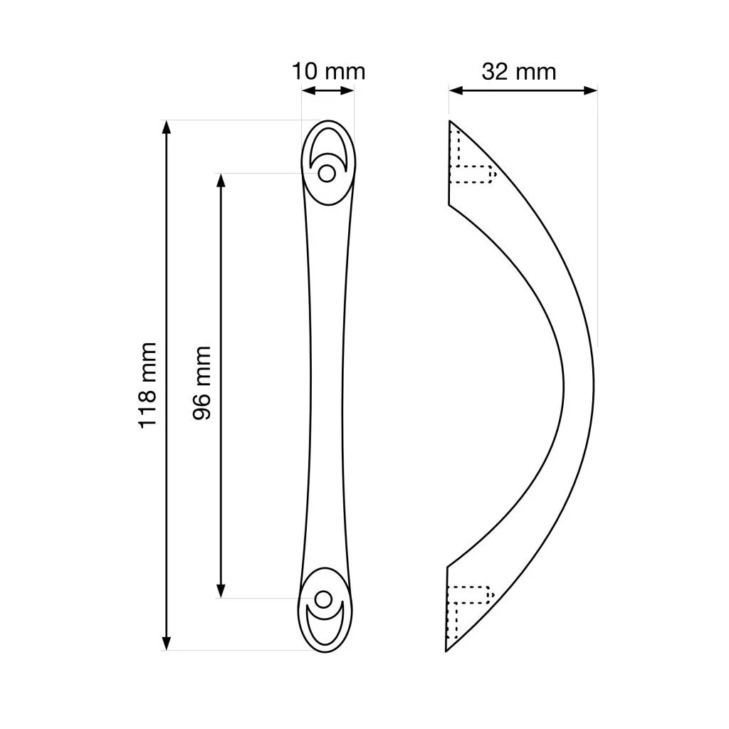 Klasszikus dizájnú, 96 mm-es tengelytávolságú, krómozott Beta bútorfogantyú-készlet. Fogantyúhossz 118 mm, szélessége 10 mm és magassága 32 mm. A csomag 4 fogantyút és rögzítőcsavarokat tartalmaz.