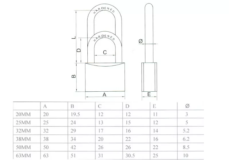 szélesség: 32 mm kengyel átmérő: 5,2 mm kengyel alatti szélesség: 17 mm kengyel alatti magasság : 16 mm szín : festett fekete alapanyag : acél kulcsok száma : 2